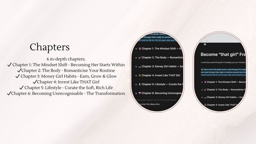 ✔️ 15 daily glow-up tasks across mindset, money, lifestyle, body & investing