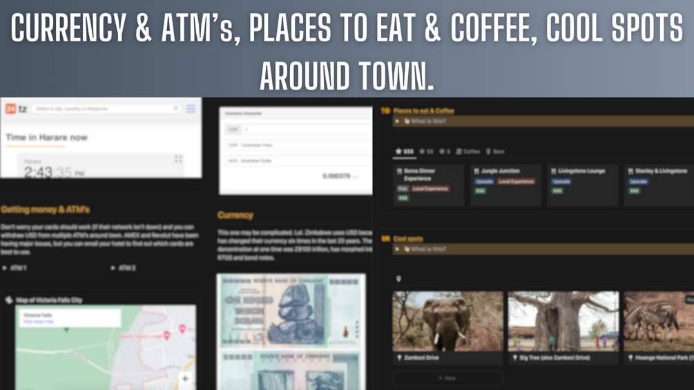 I am a local Zimbabwean. I created a list of the best things to do, amazing places to eat, and created a mobile-friendly guide ready to act as your personal travel assistant.